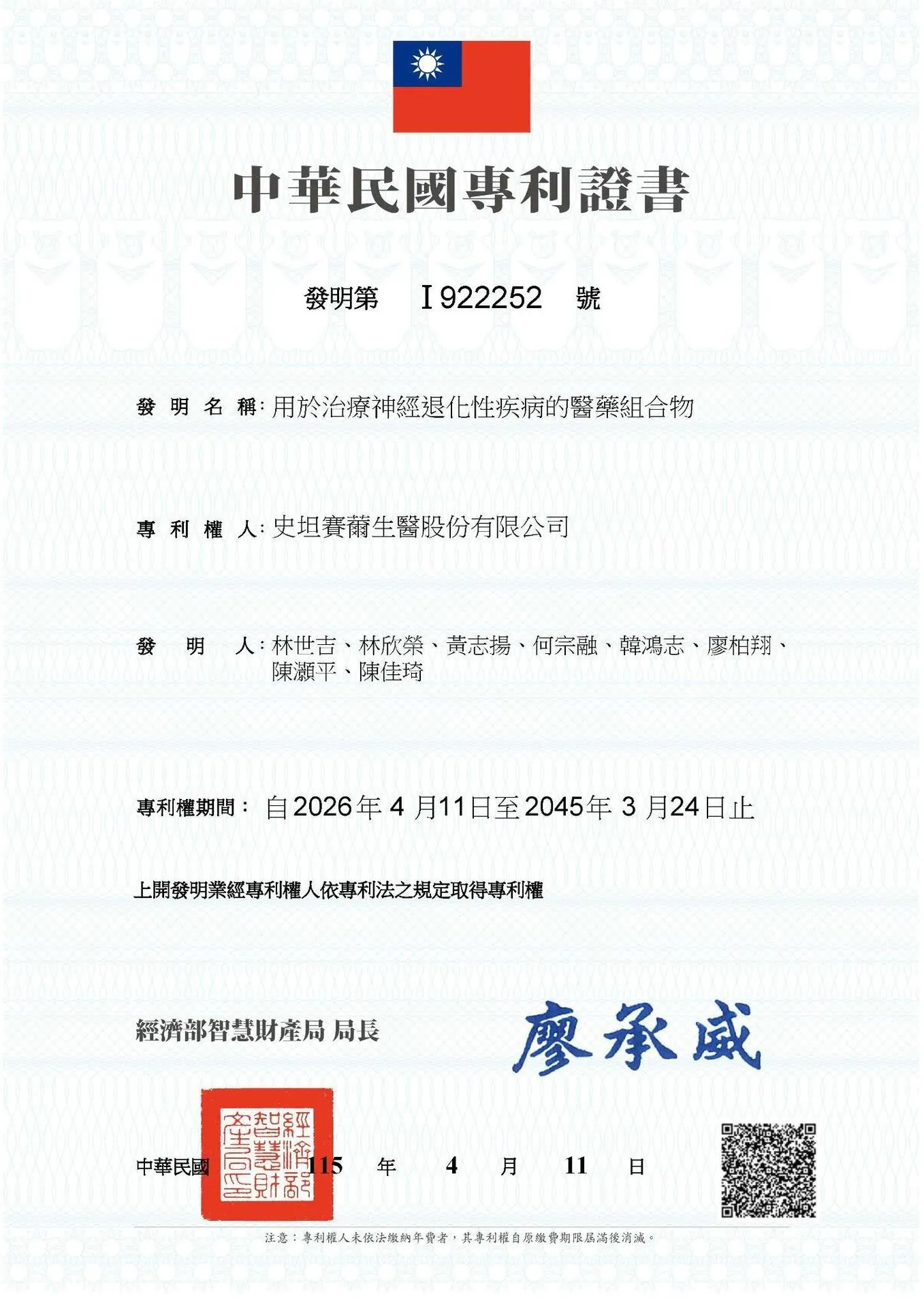歷時三年專注研發,全新產品「顧神薴本草飲」未上市即迎來重要里程碑—— 已正式獲得台灣發明專利核准(專利字號:I922252),展現史坦賽薾生醫於草本配方研發上的長期積累與創新能力 。