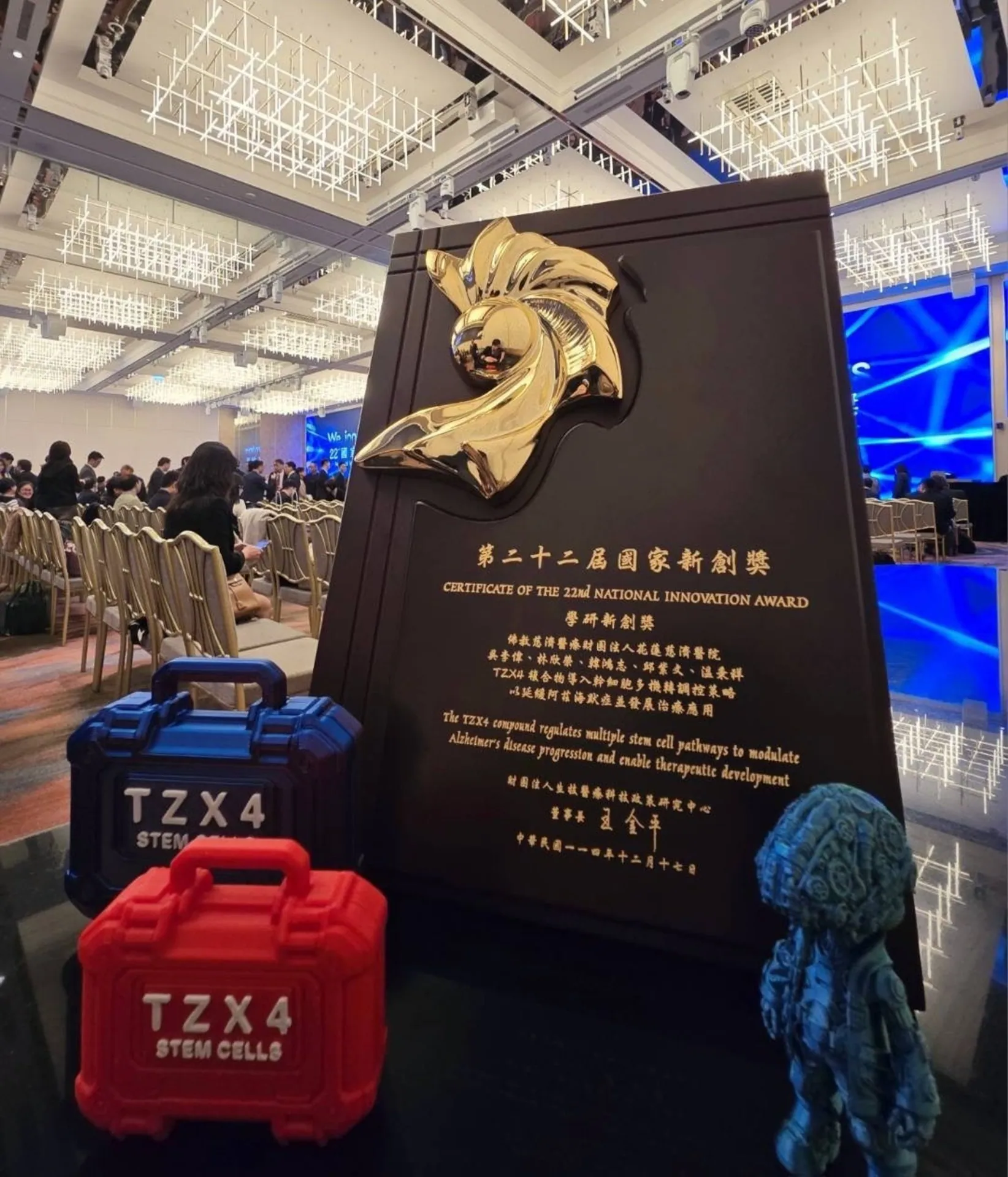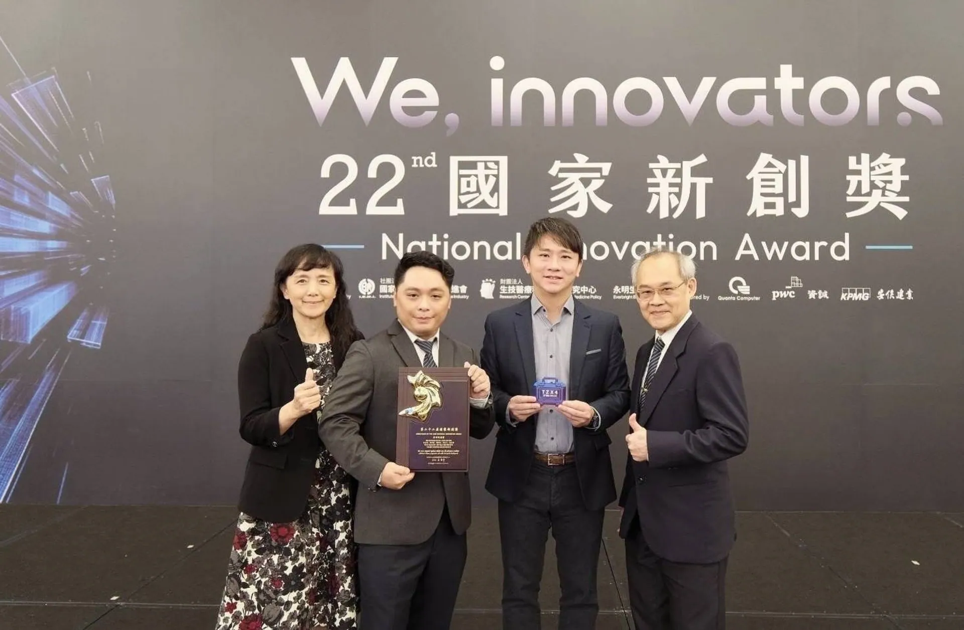 2025年「第 22 屆國家新創獎」頒獎典禮現場,TZX4 幹細胞技術研究成果獲頒「學研新創獎」。