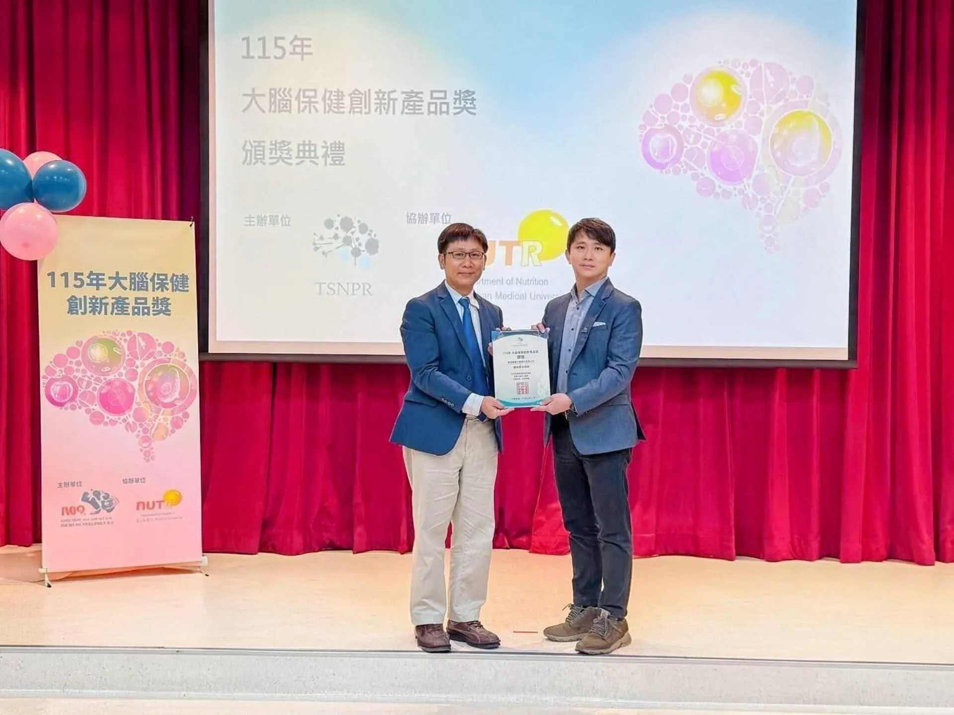 (圖說)史坦賽薾生醫研發製造中心副總蔡佳哲博士(圖右)代表受領「115年大腦保健創新產品獎」